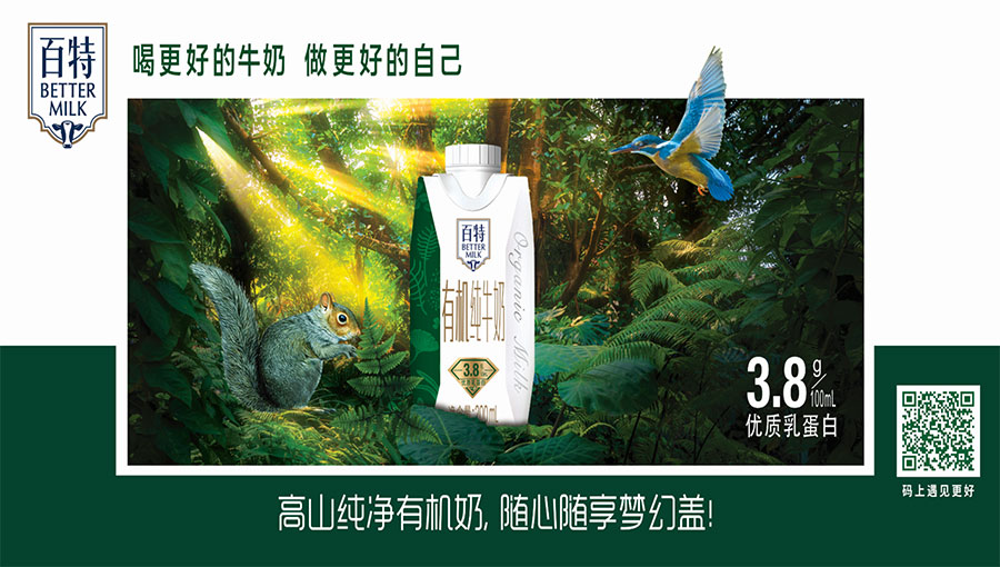 百特定位于專業(yè)健康功能路線的中高端牛奶,品牌價值主張“喝更好的牛奶,做更好的自己”。