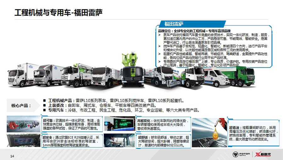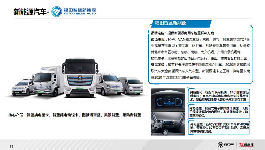 福田汽車已形成集整車制造、核心零部件、汽車金融、車聯(lián)網(wǎng)、福田電商、二手車為一體的汽車生態(tài)體系,涵蓋整車、零部件、汽車后市場三大業(yè)務(wù)版塊。整車業(yè)務(wù)覆蓋卡車、大中客車、輕型客車、皮卡、工程機(jī)械與環(huán)境裝備、新能源汽車等6大業(yè)務(wù)單元及18個(gè)產(chǎn)品品牌。在超級(jí)動(dòng)力鏈層面,福田汽車與康明斯、采埃孚等全球合作伙伴,全球首創(chuàng)動(dòng)力鏈集成創(chuàng)新模式,成立福田汽車動(dòng)力集成創(chuàng)新中心PDIC,定制打造福田汽車第一條動(dòng)力鏈產(chǎn)品——“X超級(jí)動(dòng)力鏈”,引領(lǐng)中國商用車動(dòng)力系統(tǒng)變革。后市場業(yè)務(wù)著力服務(wù)生態(tài)建設(shè),覆蓋用戶從購車到用車的全生命周期,積極拓展金融、二手車業(yè)務(wù),將智能科技融入服務(wù)體系,2020年,發(fā)布智能互聯(lián)業(yè)務(wù)品牌——會(huì)享福,著力推進(jìn)商用車后市場服務(wù)生態(tài)建設(shè)。