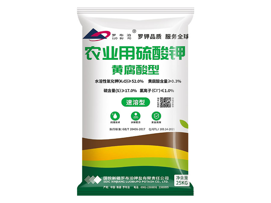 主要產(chǎn)品:“羅布泊”農(nóng)業(yè)用硫酸鉀(粉末/顆粒)、硫酸鉀鎂肥(粉末/顆粒)、水溶型農(nóng)業(yè)用硫酸鉀、黃腐酸型農(nóng)業(yè)用硫酸鉀、農(nóng)業(yè)用硫酸鉀速溶型