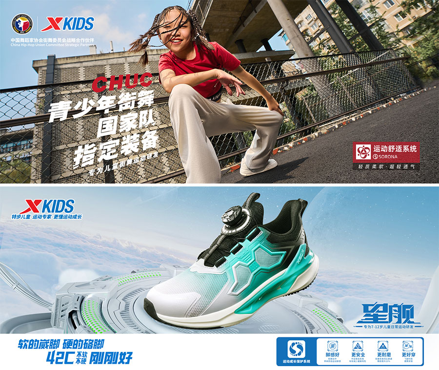 特步兒童一直在不斷尋找更多文化表達的新方式,為更多富含營養(yǎng)的文化資源創(chuàng)造與大眾親密接觸的機會。深入兒童圈層,以大國少年為核心,圍繞體育強國、文化愛國、科技興國三個內(nèi)核深度探索。與中國青少年基金會共同推動“驕陽計劃”、攜手中國舞蹈家協(xié)會街舞委員會共同發(fā)起“CHUC青少年街舞成長計劃”,攜手中國航天博物館共同推出“百萬少年問天計劃”。這些無一不說明特步兒童正一步一步將品牌文化融合到每一位少年的生活當中。