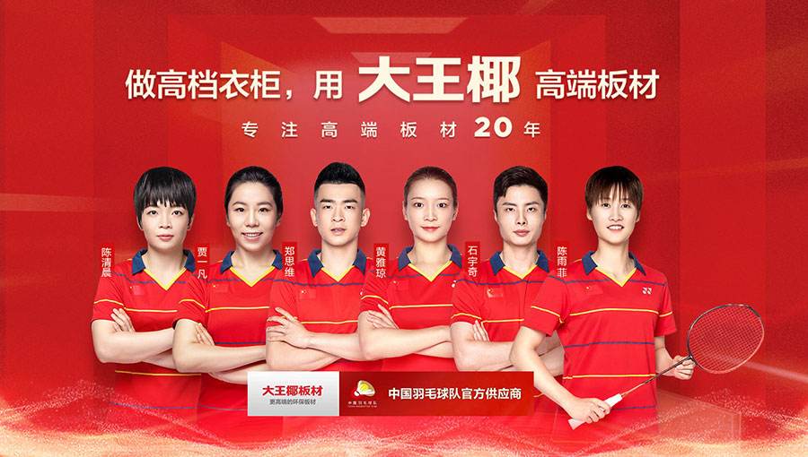 大王椰創(chuàng)立于2000年,專注中國高端家裝市場,是免漆板、細(xì)木工板國標(biāo)起草單位,中國羽毛球隊(duì)官方供應(yīng)商,航天CNSPACE官方合作品牌。大王椰擁有3000多家全國品牌專賣店,20多年來以板材為核心,帶動(dòng)相關(guān)產(chǎn)業(yè)發(fā)展,包括五金、地板、木門、全屋定制及其配套產(chǎn)品,形成多元化產(chǎn)業(yè)格局,是國內(nèi)值得信任的家居服務(wù)商。