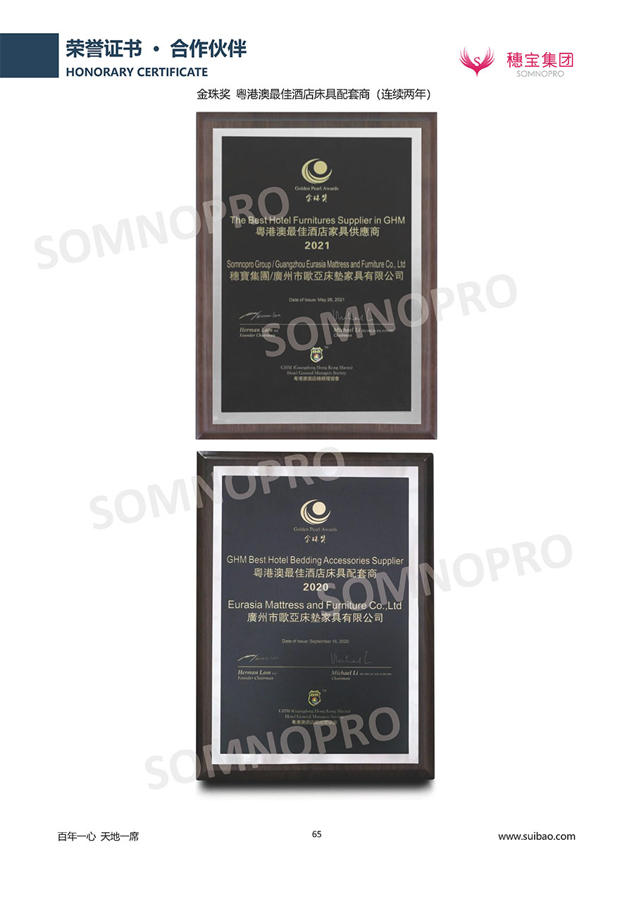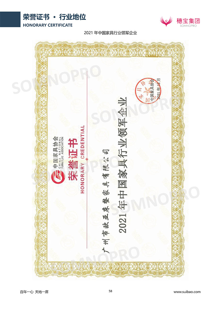 自1971年獨立研發(fā)生產(chǎn)出專屬國人的彈簧床墊,穗寶關(guān)于優(yōu)質(zhì)深度睡眠的研究已有半個世紀的歷史。穗寶一直專注床墊,專注中國消費者的睡眠研究,針對中國人特點進行優(yōu)化創(chuàng)新,不斷提升國人的睡眠體驗,只為成就每個晚上8小時的優(yōu)質(zhì)深度睡眠。憑借不斷革新的研發(fā)科技和深受消費者信賴的產(chǎn)品品質(zhì),穗寶集團旗下品牌和產(chǎn)品屢獲國內(nèi)外大獎,連續(xù)20年榮膺中國500最具價值品牌,品牌價值高達302.89億元。
