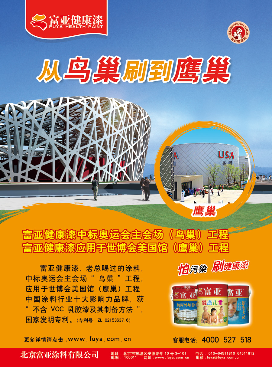 富亞涂料公司擁有多項(xiàng)國家專利,具有資深科研背景,與國內(nèi)各大科研院所、大學(xué)建有密切的合作關(guān)系,對(duì)于富亞企業(yè)的科技進(jìn)步,起到了強(qiáng)有力的支持作用。富亞涂料公司作為行業(yè)權(quán)威參與國家標(biāo)準(zhǔn)、行業(yè)標(biāo)準(zhǔn)的制定,為促進(jìn)行業(yè)發(fā)展貢獻(xiàn)了自己的力量。憑借企業(yè)強(qiáng)大的科研實(shí)力和雄厚的資金,富亞在環(huán)保與健康這個(gè)定位上,集中優(yōu)勢(shì)資源,一舉突破并實(shí)現(xiàn)VOC≈0的超級(jí)健康產(chǎn)品,實(shí)現(xiàn)了人類對(duì)健康乳膠漆的理想追求。2007年富亞產(chǎn)品一舉中標(biāo)奧運(yùn)會(huì)“鳥巢”裝飾工程;2011年富亞公司榮獲了北京市工商行政管理局頒發(fā)的2010年度“北京市著名商標(biāo)”榮譽(yù)證書;2012年,富亞健康漆入選商務(wù)部《對(duì)外援助成套項(xiàng)目主要設(shè)備材料產(chǎn)品目錄》。