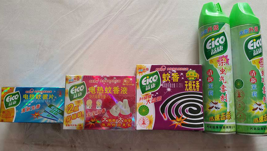 益康公司現(xiàn)有氣霧劑自動(dòng)生產(chǎn)線3條,盤式蚊香自動(dòng)生產(chǎn)線6條,蚊香包裝生產(chǎn)線6條,電熱蚊香生產(chǎn)線3條,主要產(chǎn)品有“益康”牌蚊香、殺蟲氣霧劑、電熱蚊香片、空氣清新劑等共六大類30多個(gè)規(guī)格型號(hào)。益康產(chǎn)品按照國(guó)家標(biāo)準(zhǔn)組織生產(chǎn),采用國(guó)家允許使用的衛(wèi)生殺蟲藥劑為有效成分,依法取得農(nóng)藥生產(chǎn)批準(zhǔn)證書和農(nóng)藥登記證,保證了產(chǎn)品的殺蟲效果和使用安全,產(chǎn)品多次經(jīng)國(guó)家有關(guān)部門監(jiān)督檢測(cè)均符合標(biāo)準(zhǔn)要求,受到各地用戶好評(píng)。