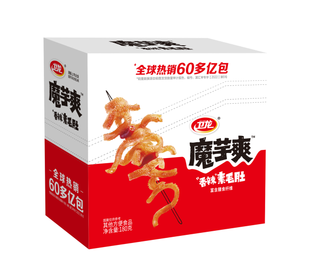 據相關資料顯示,衛(wèi)龍魔芋爽的研發(fā)靈感源自衛(wèi)龍研發(fā)團隊一次涮火鍋的過程。2009年3月,衛(wèi)龍研發(fā)團隊在成都吃火鍋時,發(fā)現有一道叫做魔芋的素食在火鍋里涮過后分外香辣Q彈、爽滑美味,于是便誕生了以魔芋為原料制作零食的想法。在衛(wèi)龍研發(fā)負責人的帶領下,團隊耗時五年,運用源自四川地道雪魔芋的急凍蒸煮工藝,最終成功造就了爽脆、Q彈的衛(wèi)龍魔芋爽。