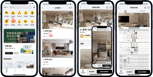 客戶想看整裝樣板間?不一定要去線下展館,一部手機就能逛夠癮。在金螳螂家APP“云樣板間”里,就可720云VR觀看各個空間的效果,里面可查看超詳細的空間材料配置表,都是優(yōu)質(zhì)大牌產(chǎn)品,還能隨時隨地針對產(chǎn)品進行在線咨詢,并按照戶型預估樣板間設計報價。