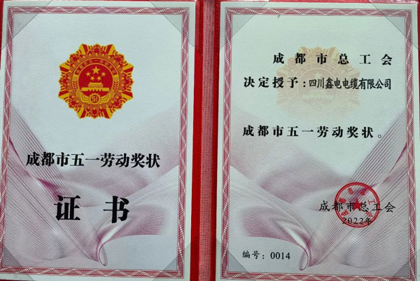 鑫電電纜榮獲“成都市五一勞動(dòng)獎(jiǎng)狀”!