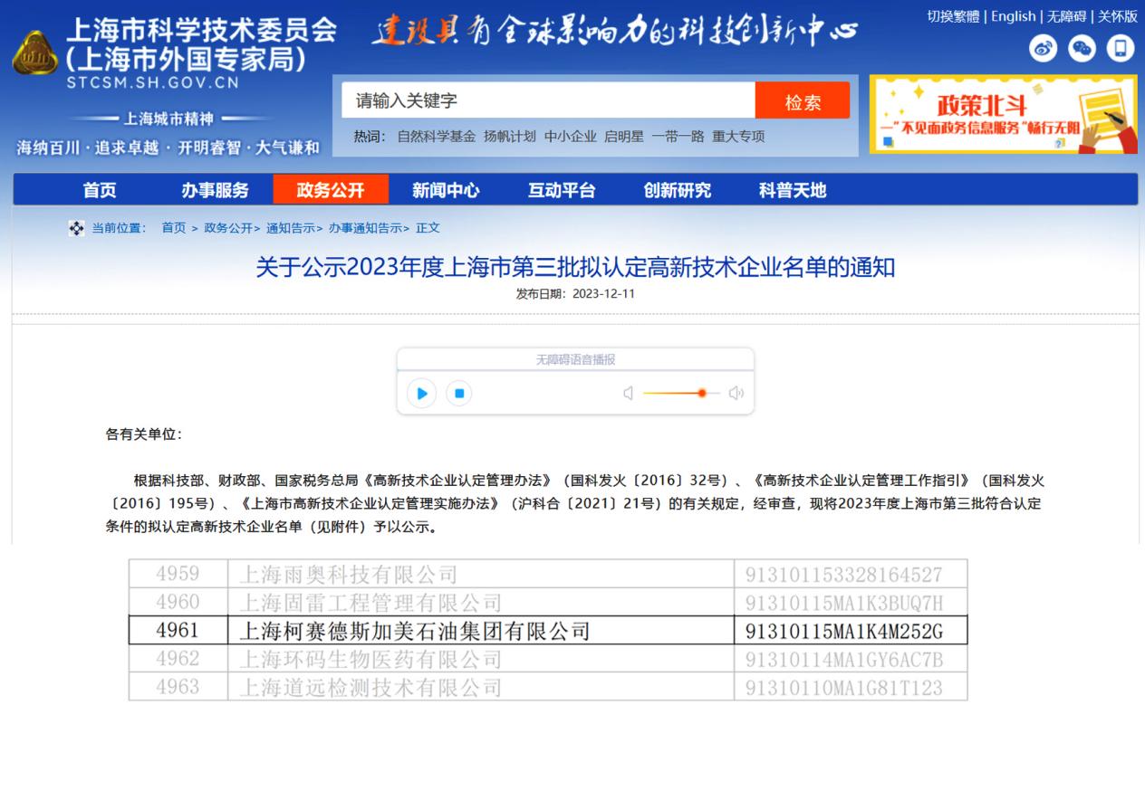柯賽德斯加美石油集團(tuán)被認(rèn)定為“高新技術(shù)”企業(yè)