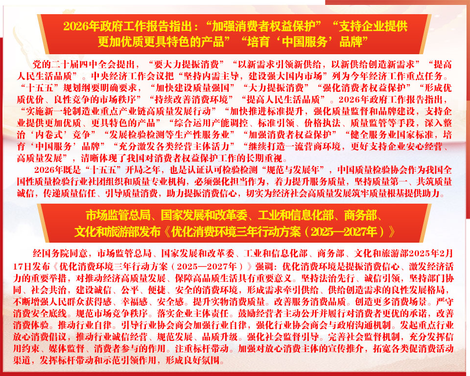 ——2026年“3·15”國際消費(fèi)者權(quán)益日“產(chǎn)品和服務(wù)質(zhì)量誠信承諾”主題活動(dòng) - 抓好質(zhì)量提升 共筑質(zhì)量誠信 傳遞質(zhì)量信任 引導(dǎo)質(zhì)量消費(fèi) 助推企業(yè)高質(zhì)量發(fā)展 維護(hù)消費(fèi)者合法權(quán)益